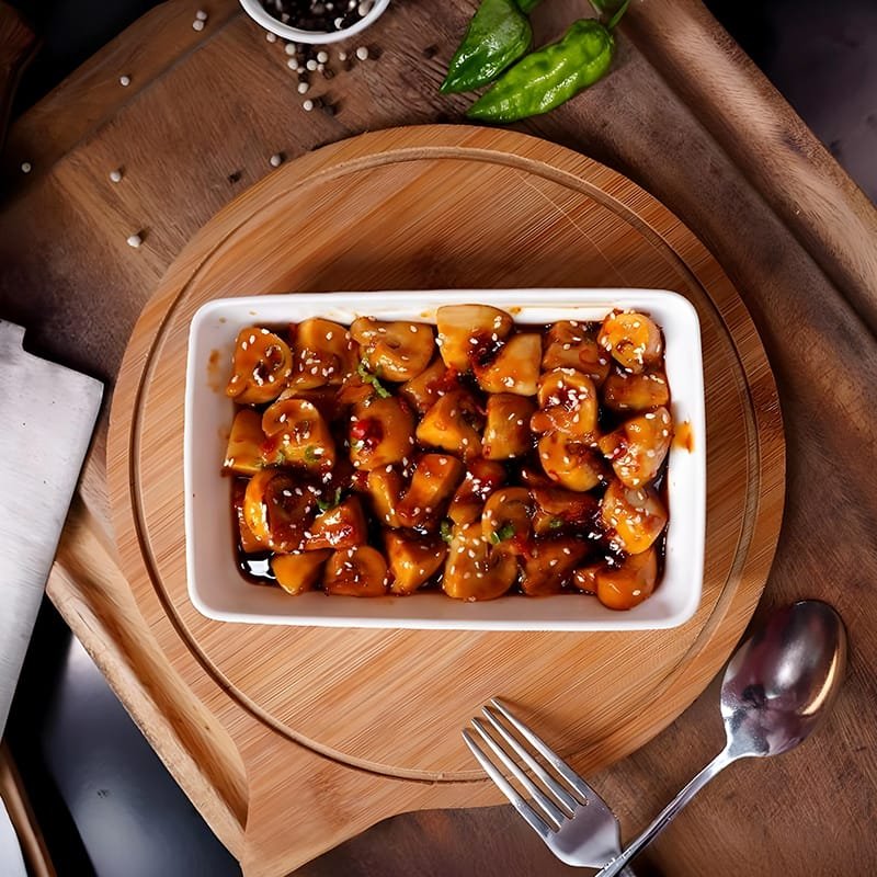 A Peruvian delicacy consisting of stir-fried mushrooms cooked